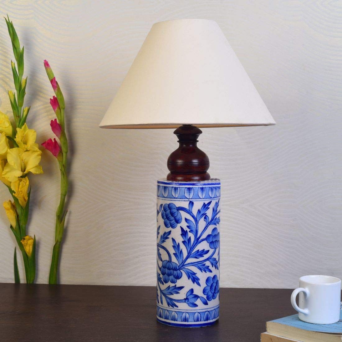 This handpainted ceramic lamp will add an ethnic touch to your living room. Place it on the bed side table or a study table, it will equally make the place graceful. It has a cute cylindrical shape with Mugal art painting done by the artisans from Rajasthan.This work is also known as Blue pottery work.Blue pottery started during the reign of Sawai Ram Singh II during 19th century, Blue Pottery is famous for the exquisite designs and excellent craftsmanship.If you want to lift the aesthetic feel of the interior of your house, then add this lamp.It can also be gifted to family and friends and they would love it!