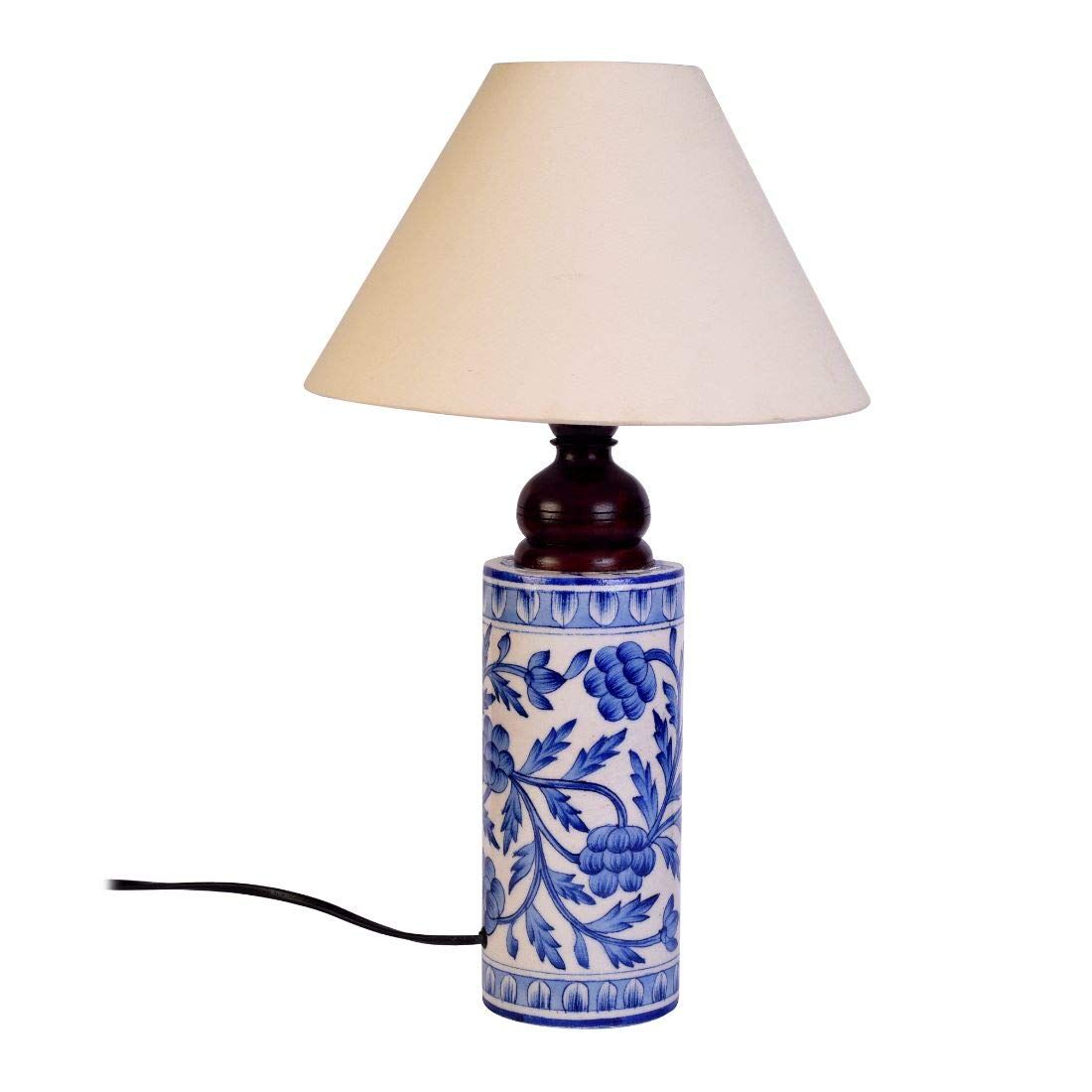 Unravel India Blue pottery mugal art ceramic cylindrical decorative Lamp (Blue,Off-white)