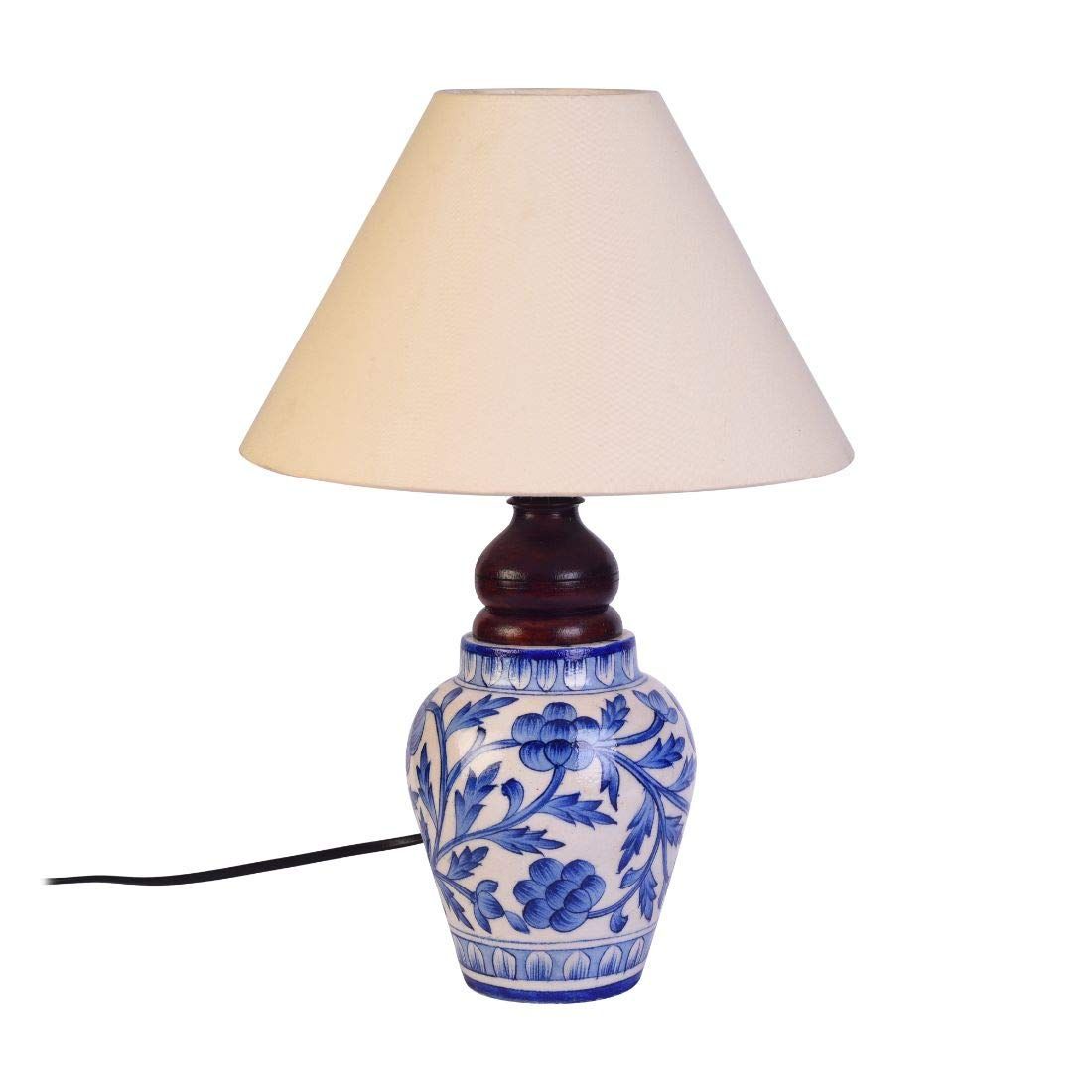 Unravel India Blue pottery mugal art ceramic matka decorative Lamp (Blue,Off-white)