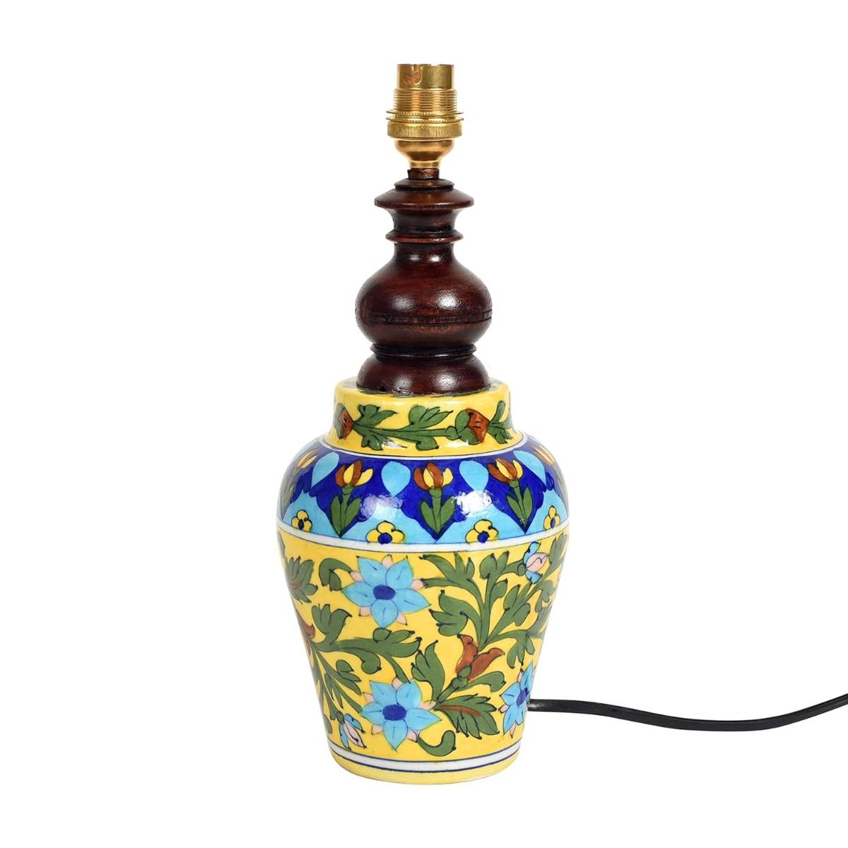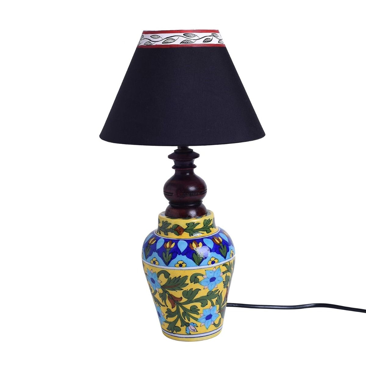 This handpainted ceramic lamp will add an ethnic touch to your living room. Place it on the bed side table or a study table, it will equally make the place graceful. It has a cute Matki shape with Mugal art painting done by the artisans from Rajasthan.This work is also known as Blue pottery work.Blue pottery started during the reign of Sawai Ram Singh II during 19th century, Blue Pottery is famous for the exquisite designs and excellent craftsmanship.If you want to lift the aesthetic feel of the interior of your house, then add this lamp.It can also be gifted to family and friends and they would love it!