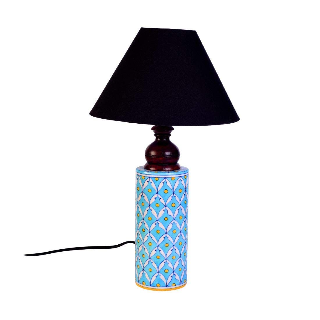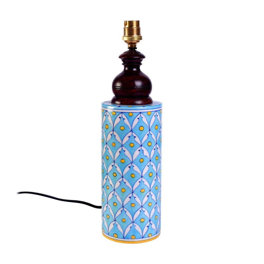 Unravel India Blue pottery white leave and yellow dot ceramic cylindrical decorative Lamp (Multicolor)