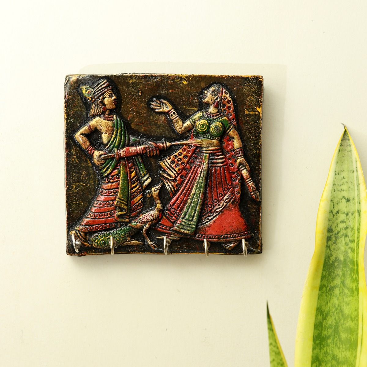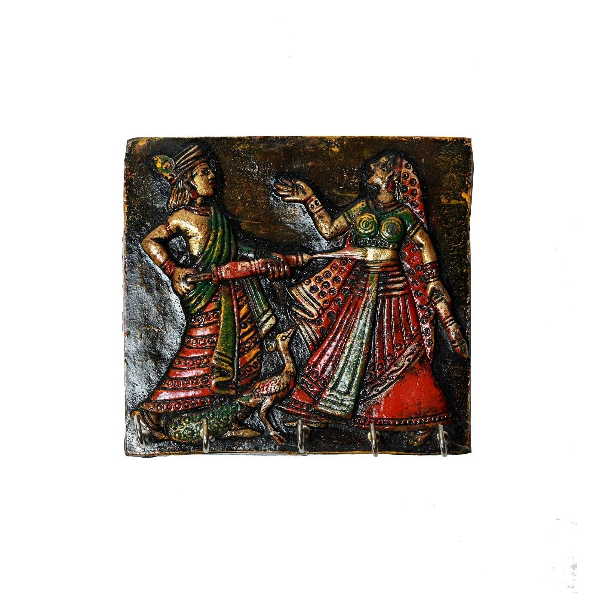 Bring home the cultural richness of Rajasthan with this elegant wall hanging key holder from Unravel India. Handcrafted with love, this piece features intricately carved tribal women dressed in traditional attire, beautifully hand-painted in vibrant hues. This artwork not only adds a rustic charm to your interiors but also serves as a practical key holder with sturdy hooks for everyday use. A perfect blend of art and utility, ideal for your entryway, living room, or as a thoughtful gift.