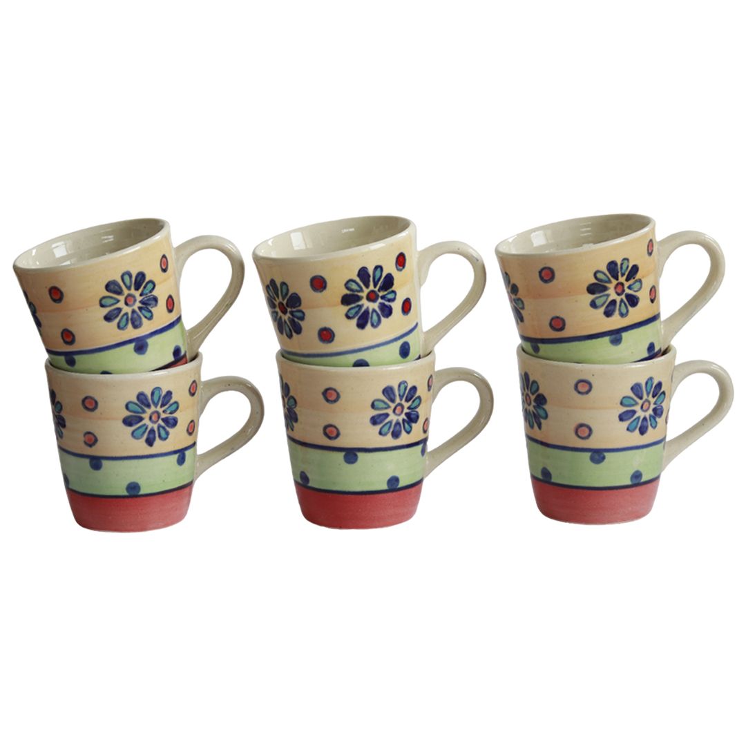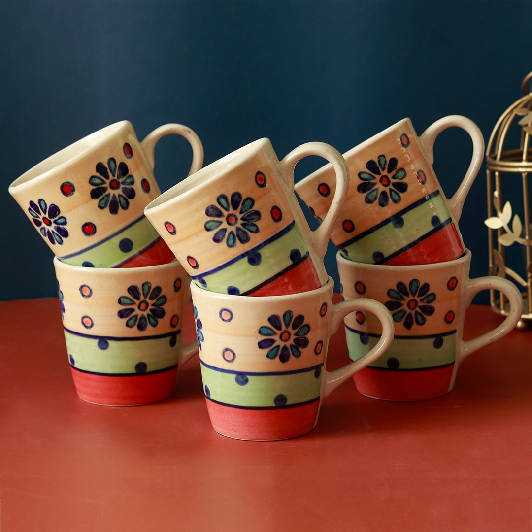 Unravel India "Flower Petals" handpainted ceramic coffee mugs(Set of 6)