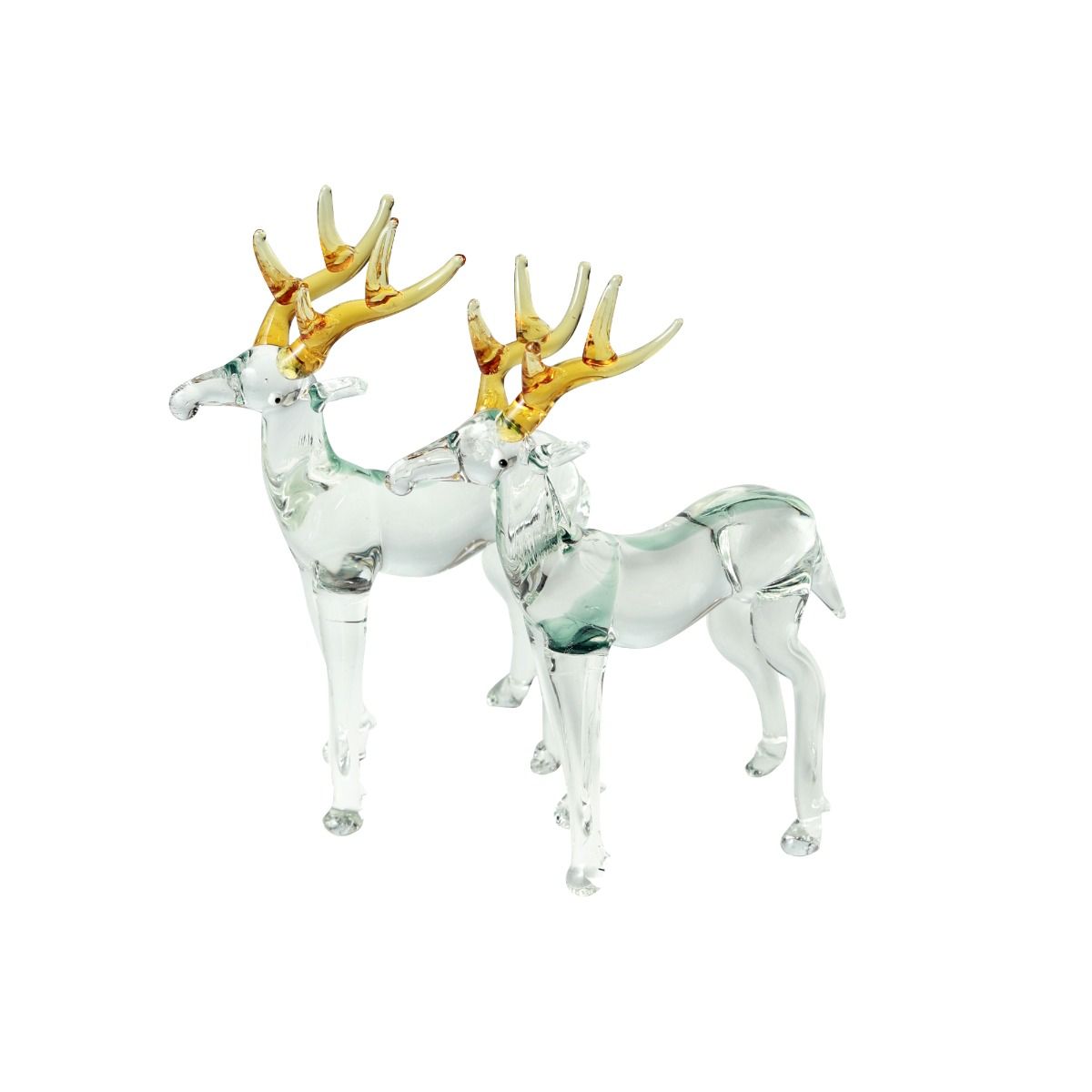 Unravel India Handcrafted Duo Crystal Glass Deer Figurine with Golden Antlers - Elegant Home Décor Showpiece