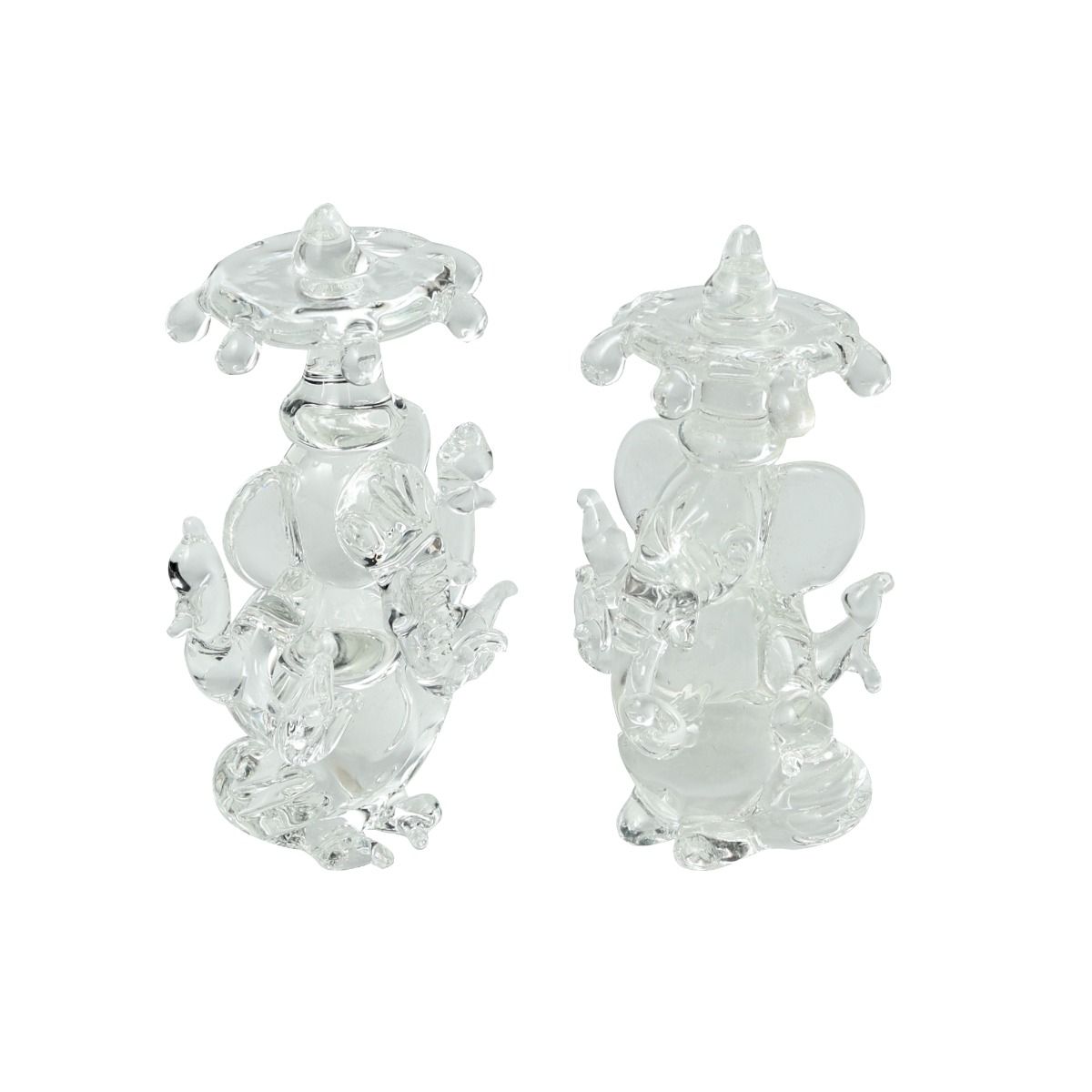 Unravel India Handcrafted Duo Crystal Glass Ganesha Idol with Chatri for Home Mandir and Spiritual Décor