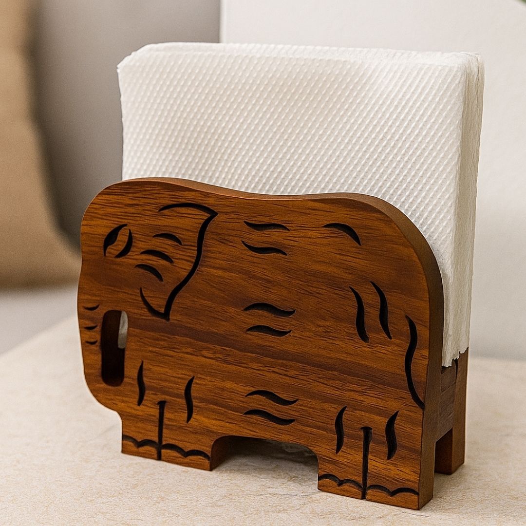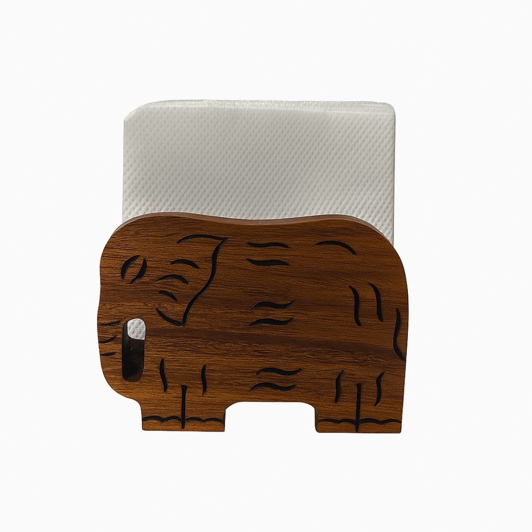 Add a whimsical yet elegant touch to your dining space with this handcrafted wooden napkin holder, shaped like an elephant. Designed with intricate cutwork and a smooth finish, this holder combines artistry with functionality. It’s perfect for holding tissues or napkins in style, whether at your dining table, kitchen counter, or office desk.
