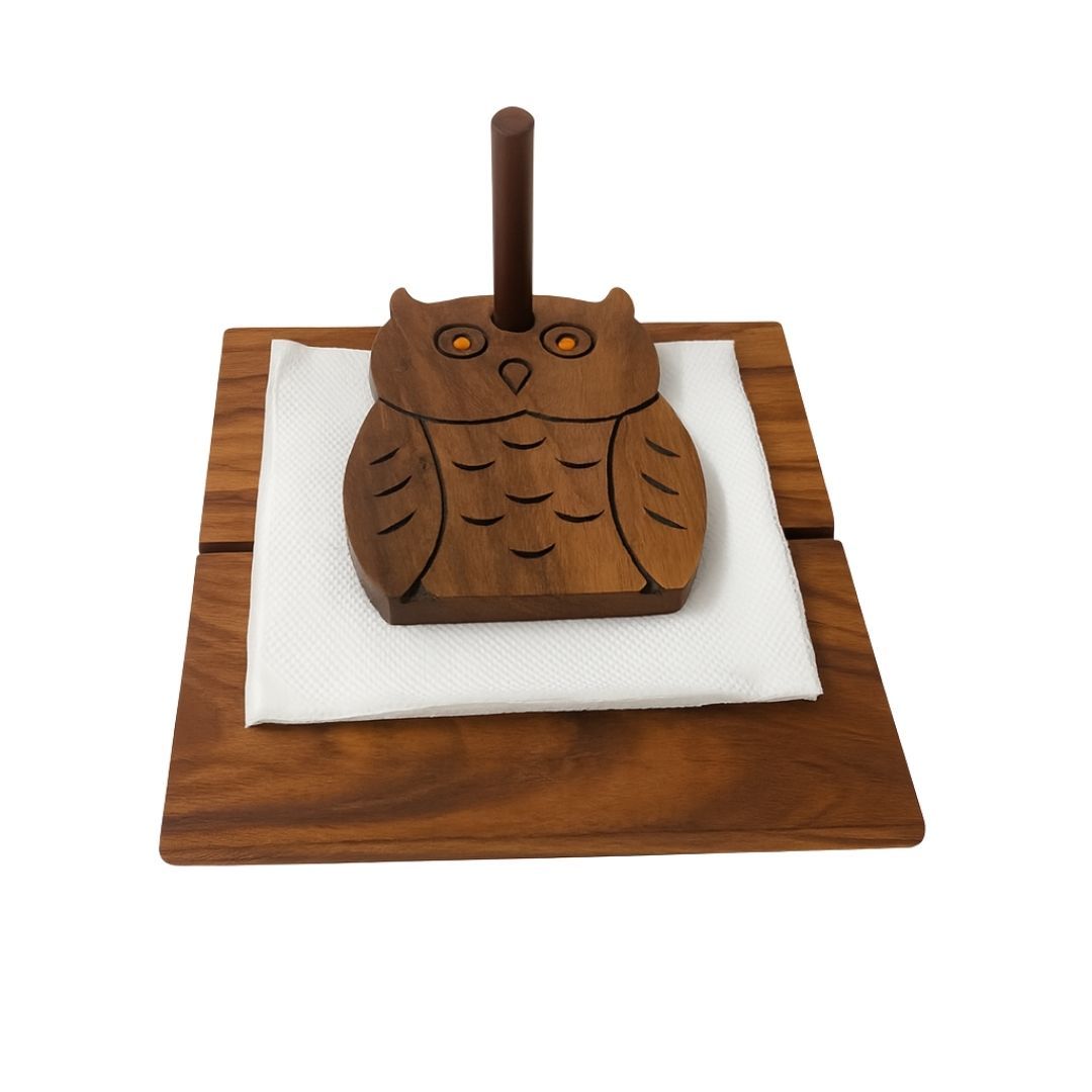 "Elevate your dining décor with this charming handcrafted wooden napkin holder featuring a carved owl design. Made from premium quality wood, this piece is both functional and decorative. The upright rod keeps tissues in place while the owl adds a rustic, artistic touch. Perfect for dining tables, cafés, kitchen counters, or gifting.