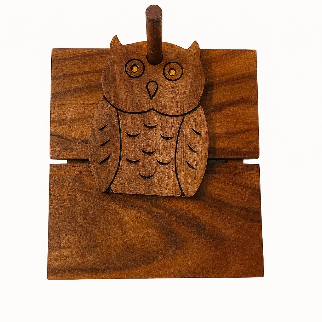 Unravel India Handcrafted "Owl Motif" Wooden Napkin Holder