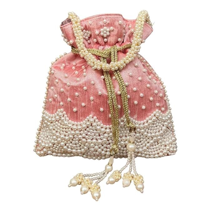 This premium handcrafted pearl potli bag for women is designed to enhance your ethnic fashion and wedding styling. Made with fine quality silk fabric and decorated with heavy pearl bead embroidery, this designer potli handbag offers a rich traditional look perfect for bridal wear, festive outfits, and party functions. The elegant craftsmanship makes it an ideal bridal potli bag, ethnic potli purse, and wedding clutch bag for women. This stylish potli bag for saree lehenga and suit is lightweight yet spacious enough to carry mobile phone, money, makeup, cards, and keys. The strong drawstring closure ensures safety while maintaining a classy appearance. The premium lining and durable stitching provide long-lasting use, making it a reliable traditional potli handbag for women. Perfect for wedding ceremonies, engagement functions, festive parties, reception events, and cultural celebrations, this ethnic clutch bag for women also works beautifully as a return gift potli bag, bridesmaid gift potli, and wedding gifting handbag. It is a must-have accessory for women who love traditional fashion and designer ethnic handbags. Upgrade your festive wardrobe with this elegant designer potli bag, a timeless blend of tradition, style, and utility that adds luxury charm to every outfit.