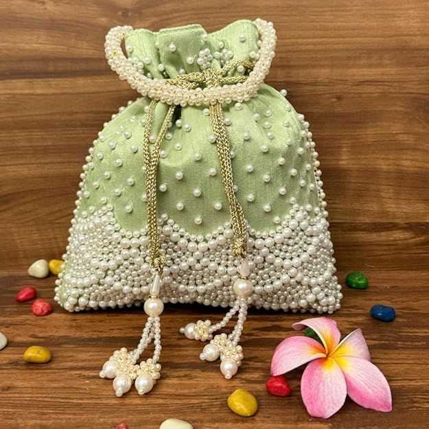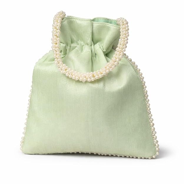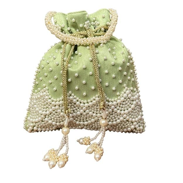 Unravel India Handcrafted Pista Green Pearl Potli Bag for Women | Wedding & Festive Ethnic Handbag