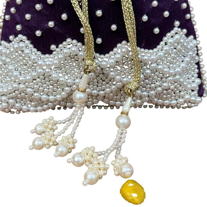 Unravel India Handcrafted Purple Velvet Pearl Potli Bag for Women | Party & Wedding Ethnic Handbag