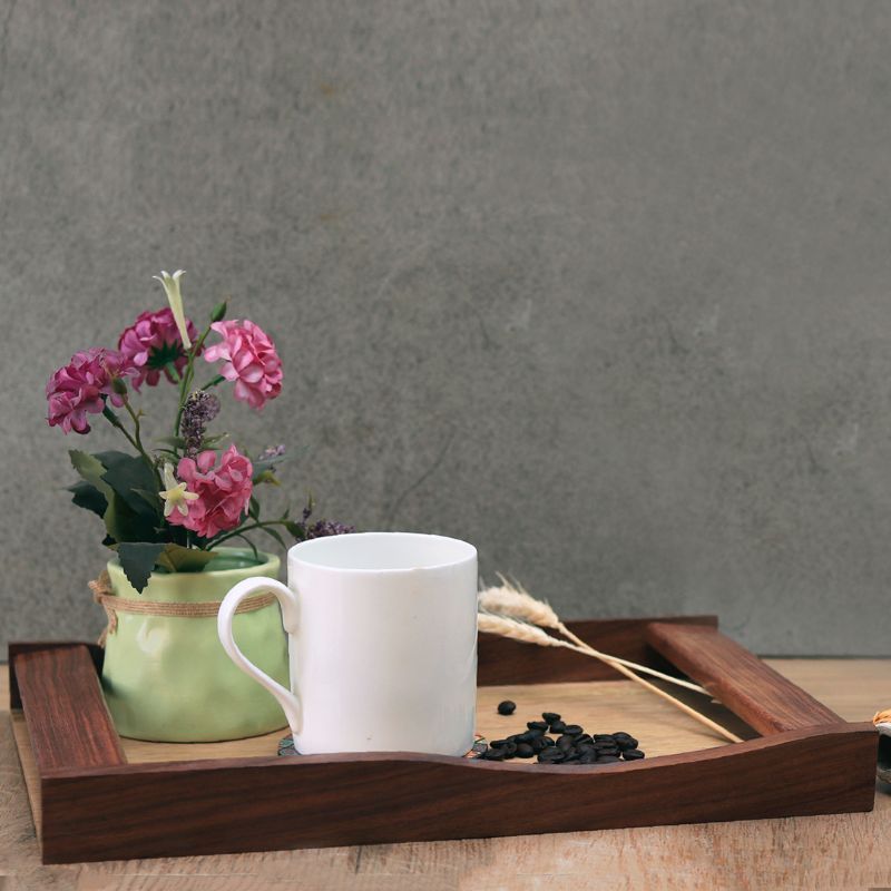 Unravel India presents kitchen and dining collection of hand crafted pieces with ethnic looks that can match today's modern style dining too. Made of mango wood, this collection showcases small diningware and serveware collectibles that add a rustic charm to your dining experience. This dual-toned tray not only captures the multifaceted rawness of wood, but also portrays the enigmatic woodlands wonderfully by bringing to your doorstep utility products made using resources from the woodlands themselves. While staying true to the wood's natural browns, the artisans have created this chic and elegant serving tray perfect for serving refreshments and beverages, It also serves as the perfect gift during the festive season.