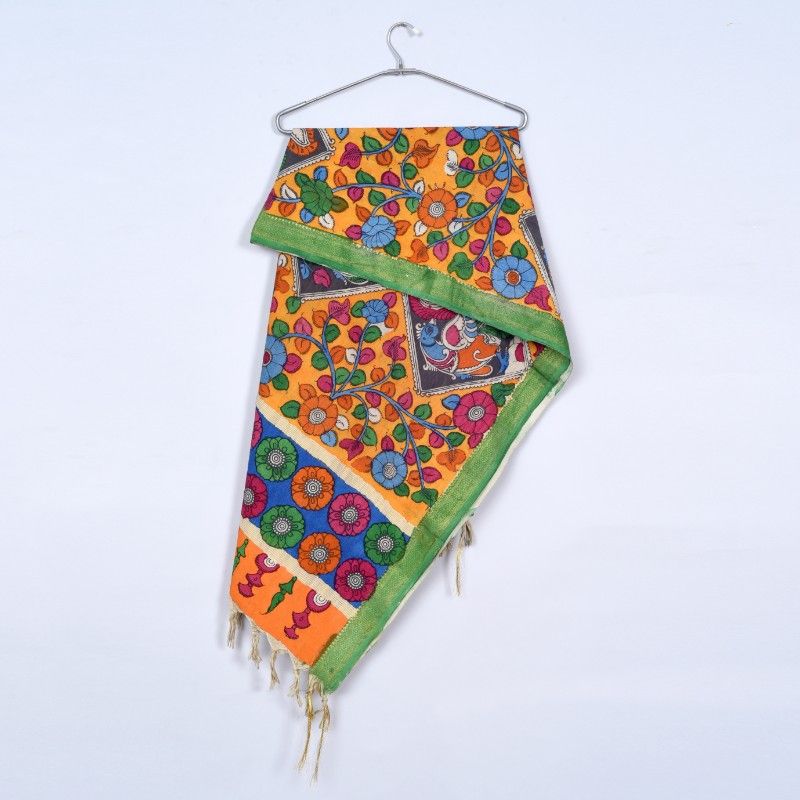 Get some more wow in your festive wardrobe with these Kalamkari stoles in resplendent colors. The word 'Kalamkari' has been derived from qalam (pen) and kari (craftmanship) meaning drawing with a pen. Only natural dyes are used in kalamkari and it involves seventeen steps . Pair these magnificent drapes in chanderi, crepe, wool & cotton, embroidered in traditional kalamkari motifs and a burst of colors with your favourite festive kurtas and make a stylish statement.
