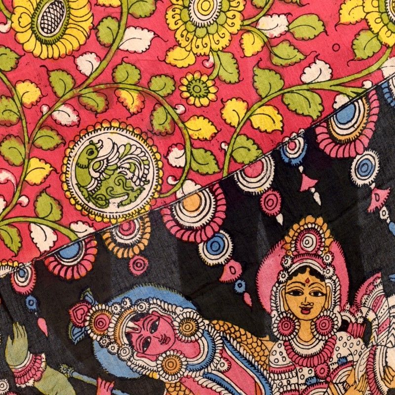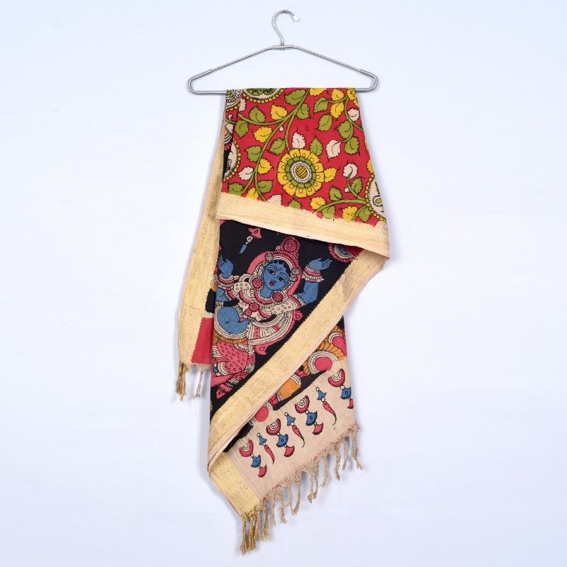 Get some more wow in your festive wardrobe with these Kalamkari stoles in resplendent colors. The word 'Kalamkari' has been derived from qalam (pen) and kari (craftmanship) meaning drawing with a pen. Only natural dyes are used in kalamkari and it involves seventeen steps . Pair these magnificent drapes in chanderi, crepe, wool & cotton, embroidered in traditional kalamkari motifs and a burst of colors with your favourite festive kurtas and make a stylish statement.
