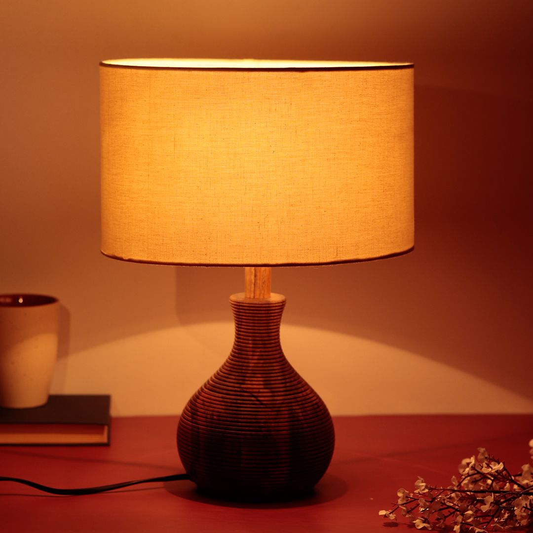 Simple yet stunning design this "Matka Ribbed" table lamp will enhance the interiors of your space by giving it a modern and beautiful look, whether it’s your home, office or your living area. Crafted out of wood this collection is inspired by the fluidity of wood - how it can take the most marvellous shapes in the hands of the skilled artist, this product represents the popular wooden rippling of Uttar Pradesh. It is well suited to provide the perfect amount of reading light while setting up the ambience and the mood of your space. It is compatible with varied bulbs such as incandescent, CFL, LED, and LED smart bulbs. This lamp is an ideal decor piece for your living room, bedroom, dining room, study room and home decor. It is also an excellent buy for offices, restaurants, cafes, bars, college dorms, hallways, hotels, entrances, and institutes.