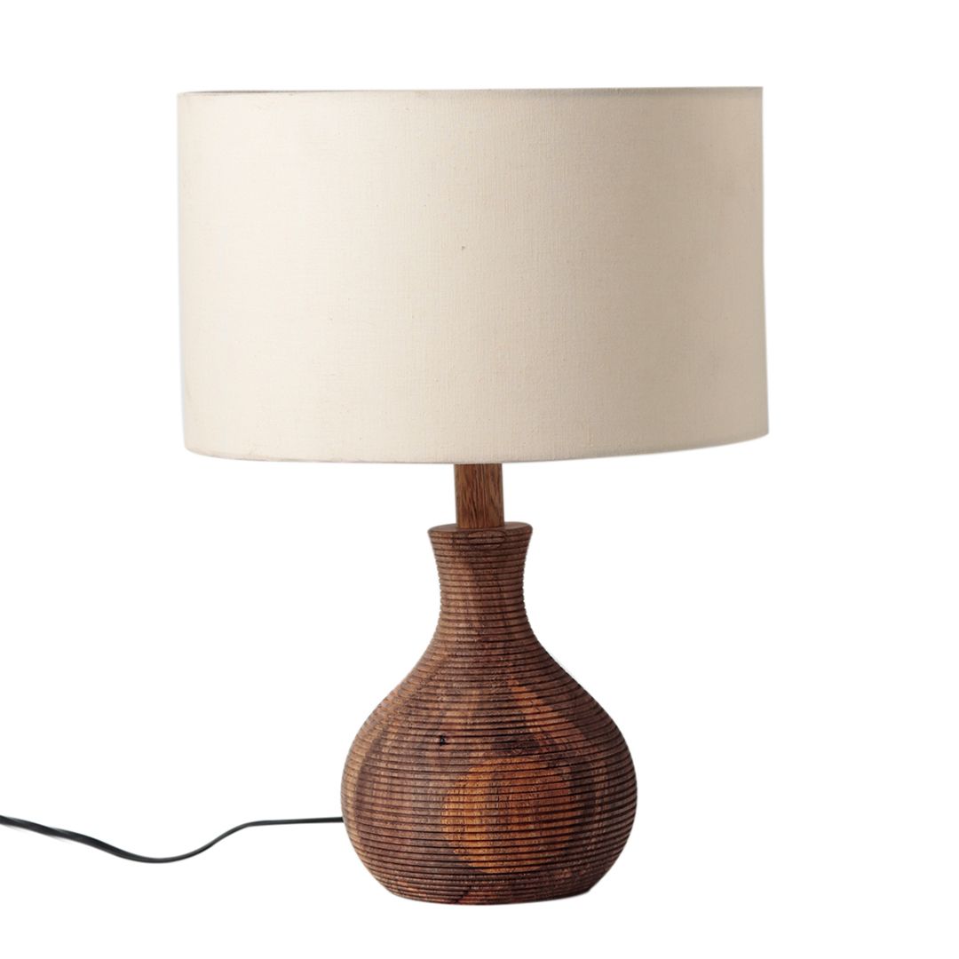 Unravel India "Matka Ribbed" sheesham wood table lamp with off-white shade