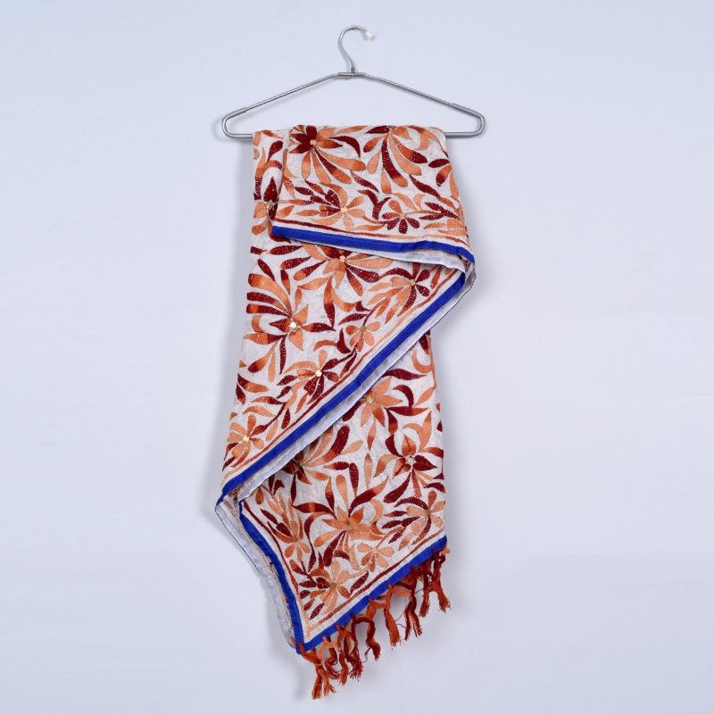 Unravel India Phulkari design off-white base with brown color embroidery Stole