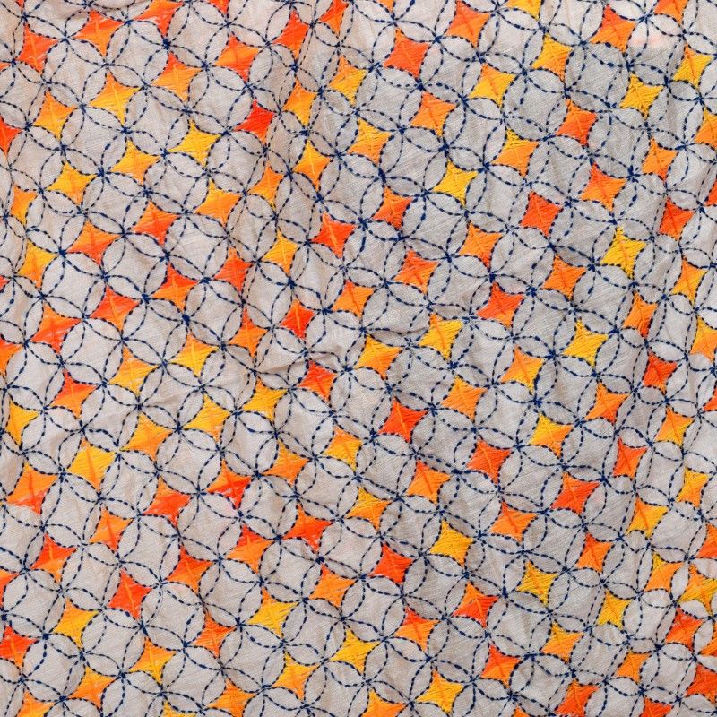 Unravel India Phulkari design Off-white base with Red & Yellow color embroidery Stole