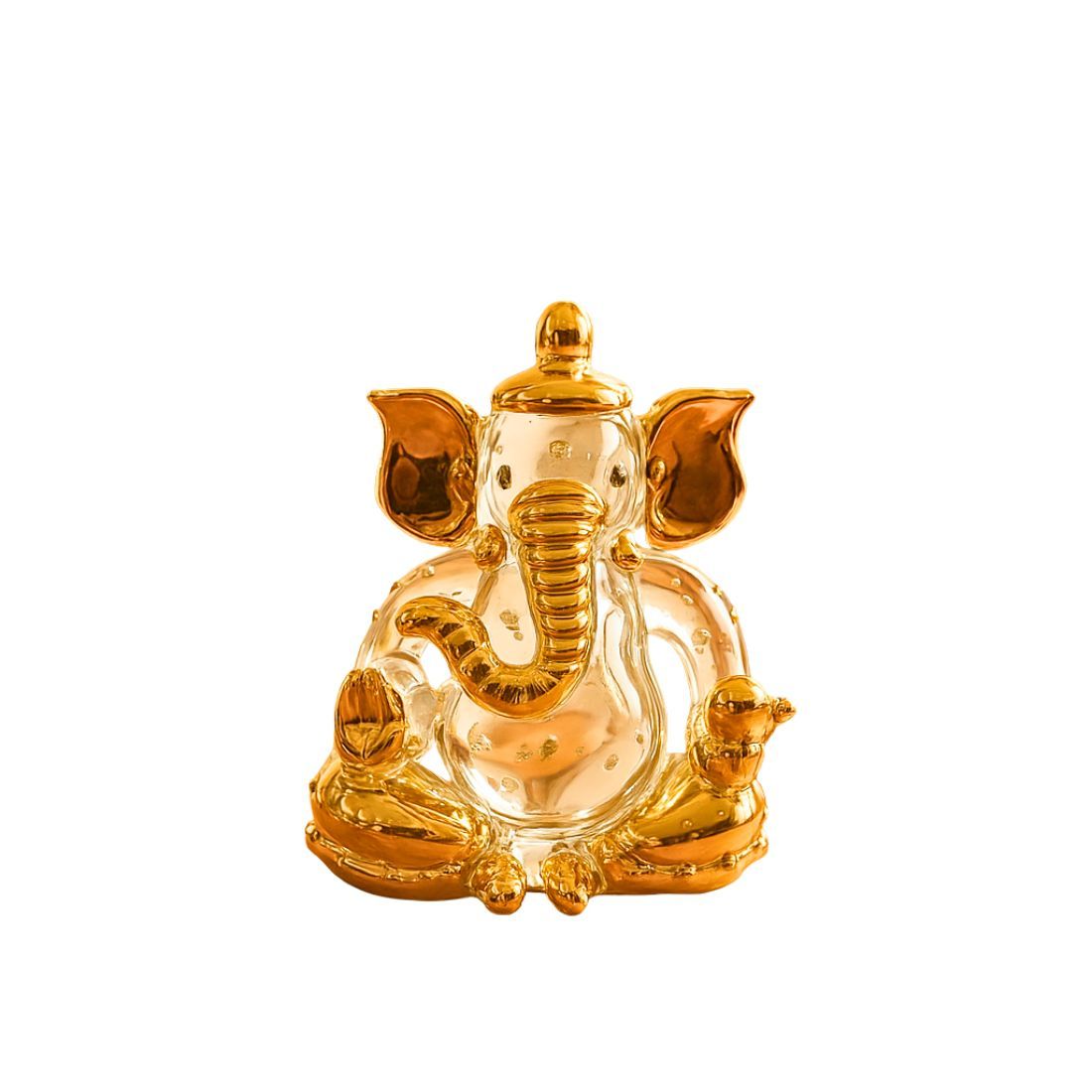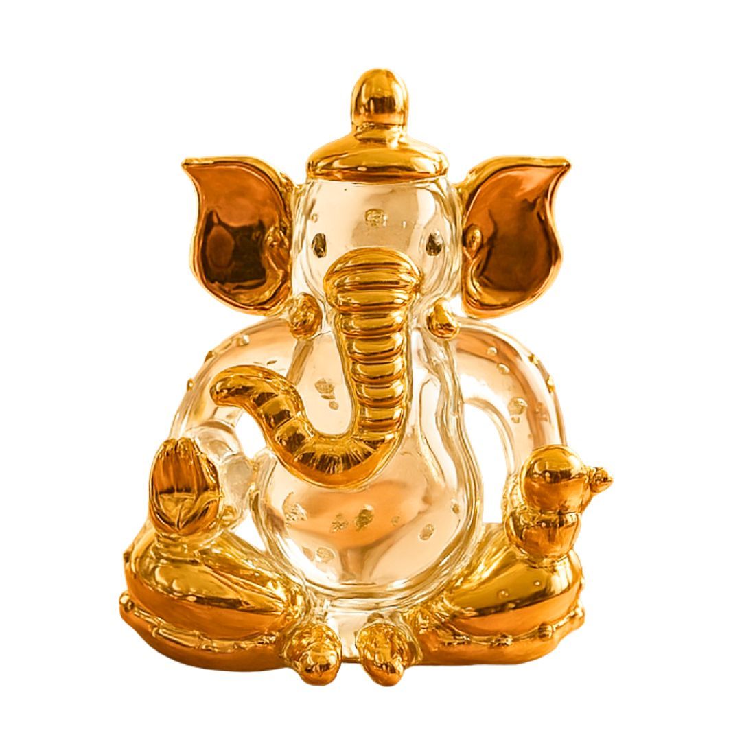 "Invite divine blessings with the Unravel India Premium Glass Ganesha Idol, crafted with a clear glass body and golden detailing. Seated gracefully, this idol radiates positivity, wisdom, and prosperity. Perfect for puja rooms, office desks, living spaces, or gifting, it blends spirituality with modern elegance.