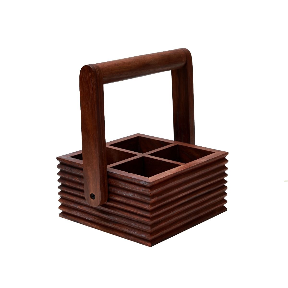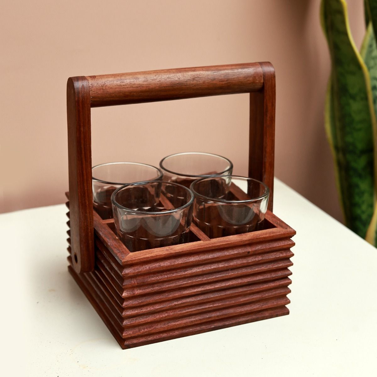Unravel India "Ripple Collection" sheesham wood glass holder with chai glass(4 Glass)
