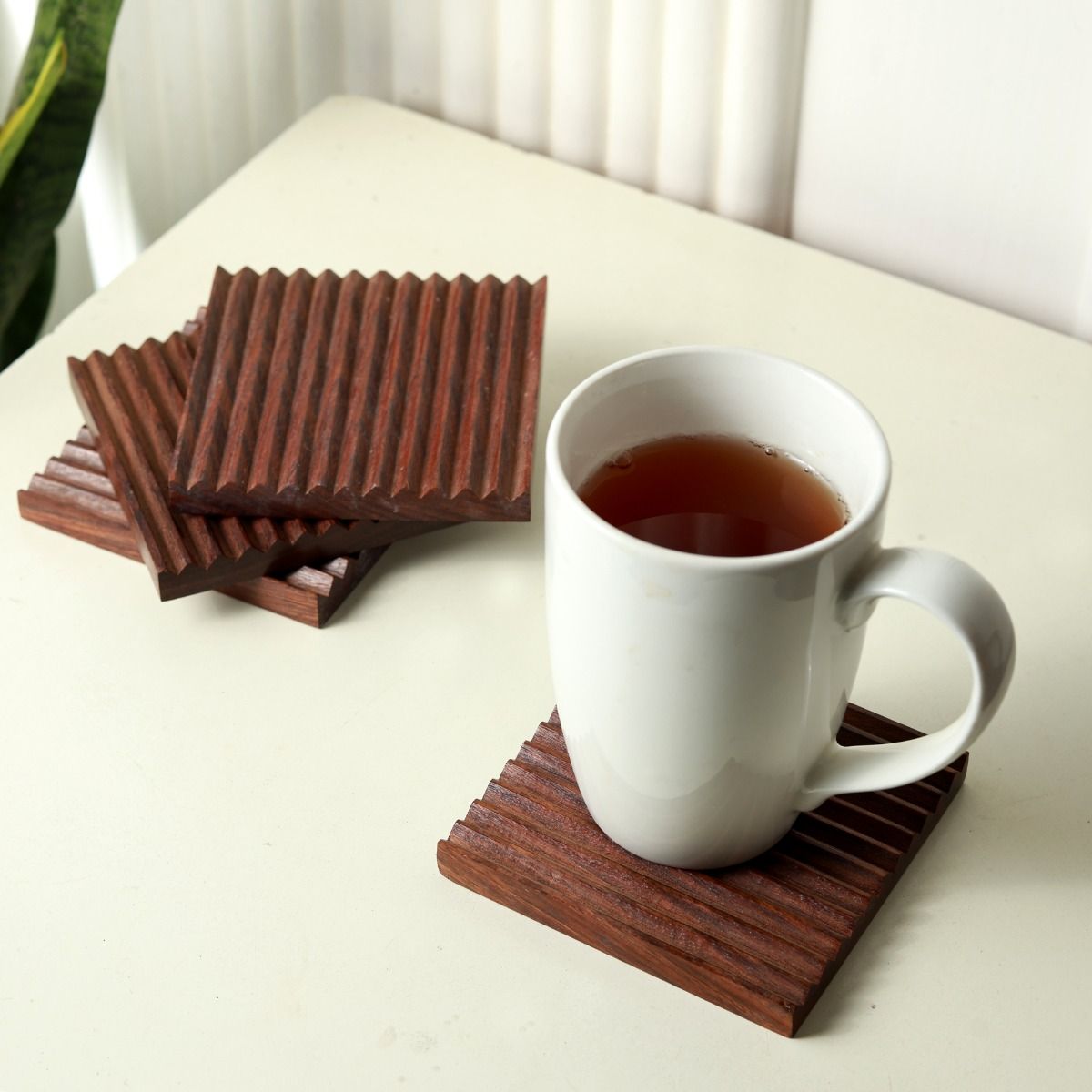 Protect your dining table with the Sheesham wood trivet & stand set. Designed to handle hot dishes, tea kettles, or cookware, these heat-resistant wooden trivets are a must-have for every kitchen. With a stylish handcrafted finish, this set is both functional and decorative.