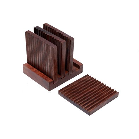 Unravel India "Ripple Collection" sheesham wood trivet & stand set