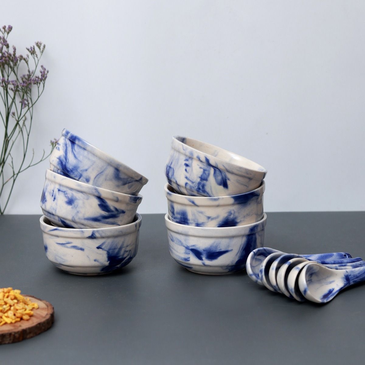 Unravel India "Shades of Earth" soup bowl set(6 Bowl, 6 Spoon)