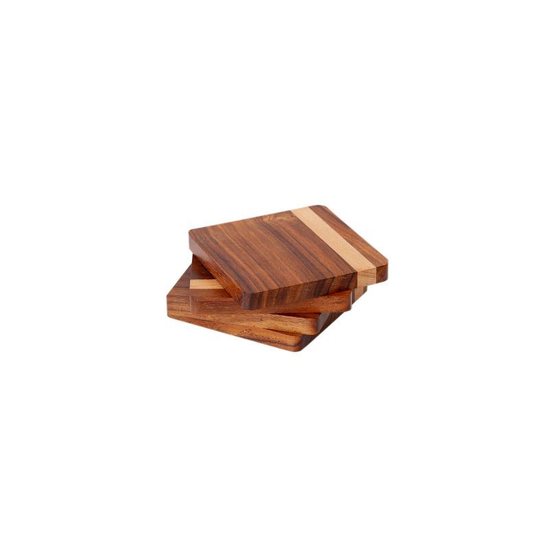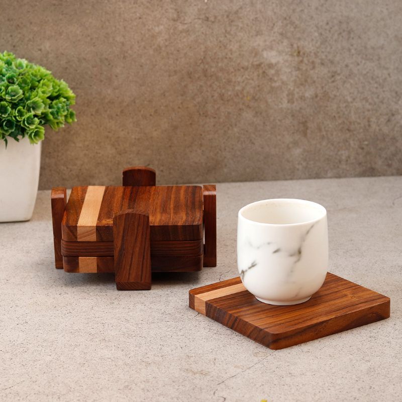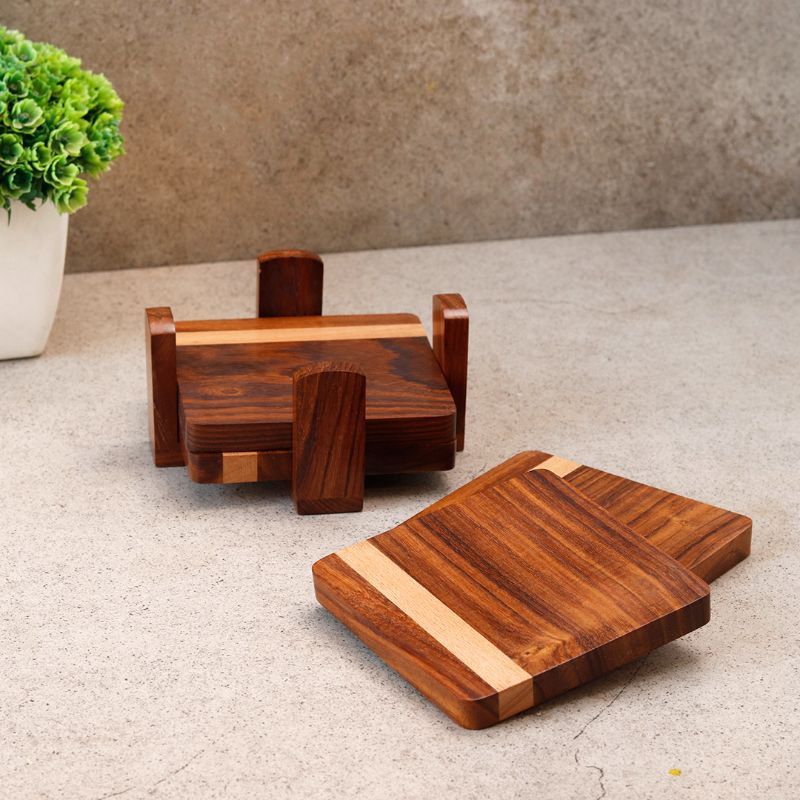 Unravel India "Wood Fusion" Coaster Set in Sheesham & Mango Wood(4 Coaster, 1 Base Tray)